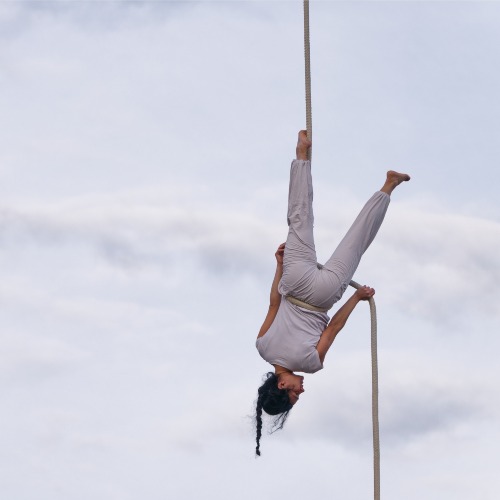 InsTant surgit dans l’espace public pour suspendre le temps et déplacer les regards. Porté par la Cie Madhuka, le projet investit les architectures existantes — passerelles, arbres, immeubles — pour créer un lien fragile mais vital entre ciel et terre. À 20 mètres du sol, la funambule verticale Amélie Kourim s’élève lentement sur la corde, sans recherche d’exploit ni de performance et ouvre un espace de perception où le son et le mouvement transforment notre rapport au lieu et au temps. À travers cette recherche épurée sur la verticalité, InsTant propose un moment de rassemblement, de connexion et d’écoute, où l’on se laisse traverser par ses propres sensations et émotions, ensemble, le temps d’un instant.